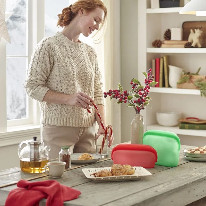 Atkārtoti lietojamais uzglabāšanas maciņš ir lieliski piemērots dažādu lietu, tostarp pārtikas produktu, uzglabāšanai, saldēšanai. Speciālās bloķēšanas cilpas notur maisiņu cieši aizvērtu un pārtika saglabājas ilgāk svaiga. Maciņš izgatavots no augstas kvalitātes 100 % pārtikas silikona, tāpēc tas ir lieliski piemērots ēdiena uzglabāšanai, un to var pat sildīt cepeškrāsnī vai mikroviļņu krāsnī. Vertikālais dizains atvieglo ēdiena sildīšanu un uzglabāšanu kā piemēram zupas un mērces.Tas ir lieliski piemērots arī citu mājsaimniecības priekšmetu uzglabāšanai, un tam ir divi izmēri, lai ilgtspējīgi uzglabātu lielākus vai mazākus daudzumus. Tā kā to var izmantot atkārtoti, jūs nepalielināsiet vides (vai sava budžeta) piesārņojumu ar atkritumiem!