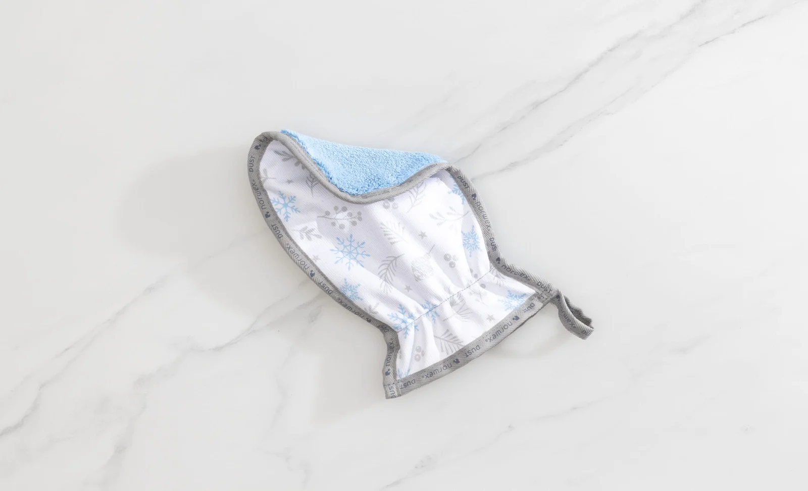 E30777 Dubultais cimds - Stikla audums + putekļu cimds zils; sniegpārslas 25 x 15 cm