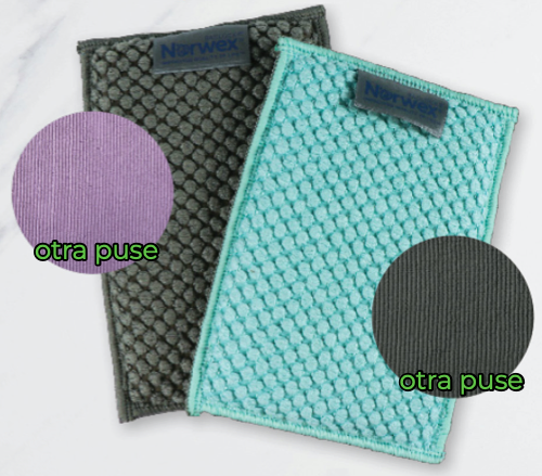 Mikrošķiedras švamme BacLock® | Divpusējai daudzfunkcionālai mikrošķiedras švammei viena puse ir no skrāpjauduma, kas paredzēta tīrīšanai bez beršanas. Otra puse ir no absorbējošas antibakteriālās Baclock® mikrošķiedras un tā paredzēta slaucīšanai. Uzsūc daudz mitruma. Var izmantot virtuvē, vannas istabā un citur. Var lietot sausu vai mitru, tikai ar ūdeni vai kopā ar Norwex tīrīšanas līdzekļiem. Iepakojumā 2 gab. | |