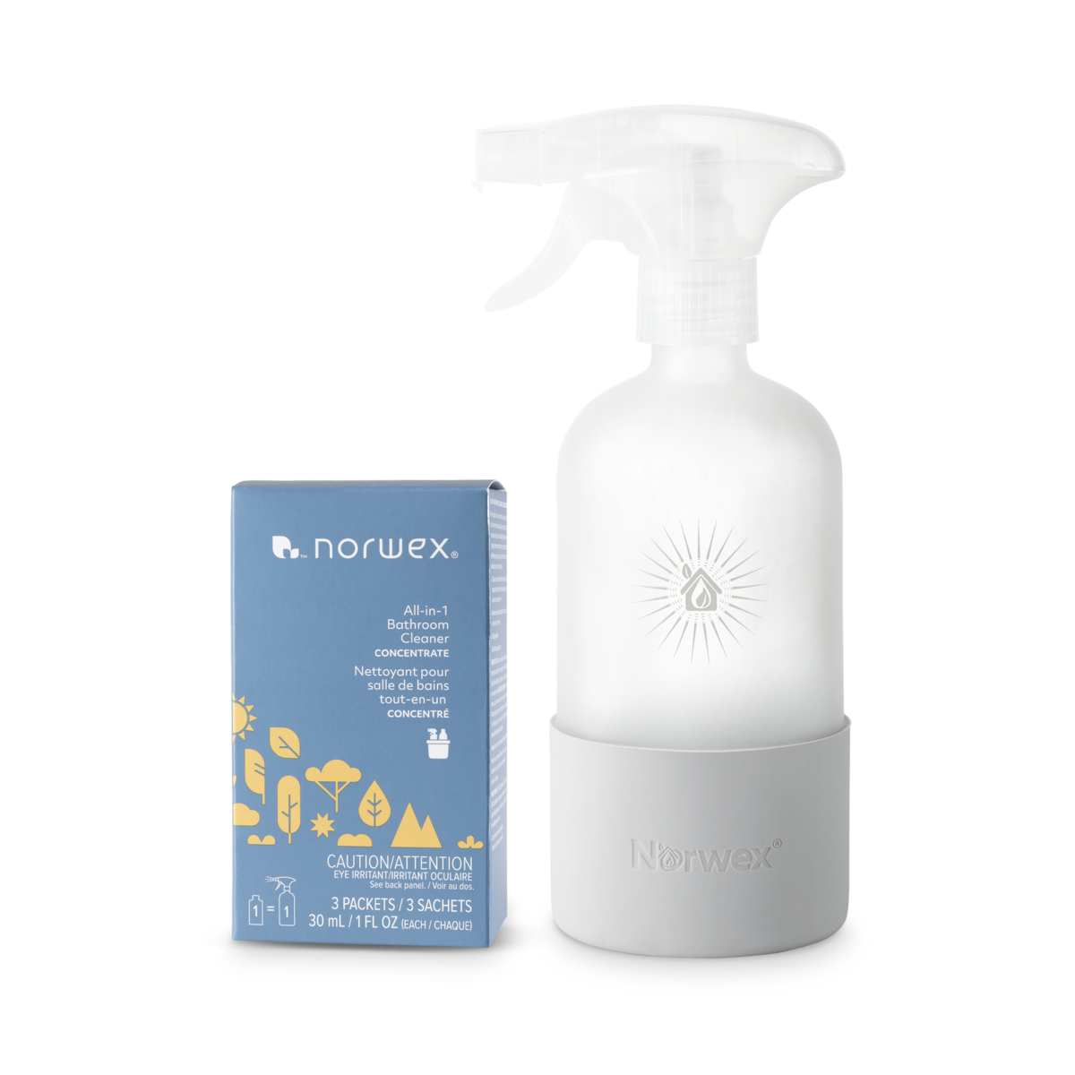 Katrā iepakojumā (3 gab.) pietiek 3 Norwex stikla pudelēm ar izsmidzinātāju vai 34 uzpildēm priekš tualetes birstes tīrīšanas sistēmas.